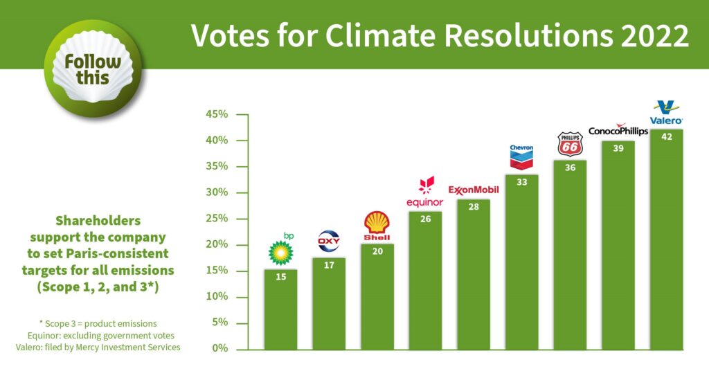 The Follow This resolution requests oil majors to set emission targets for all emissions in line with the Paris Climate Agreement.