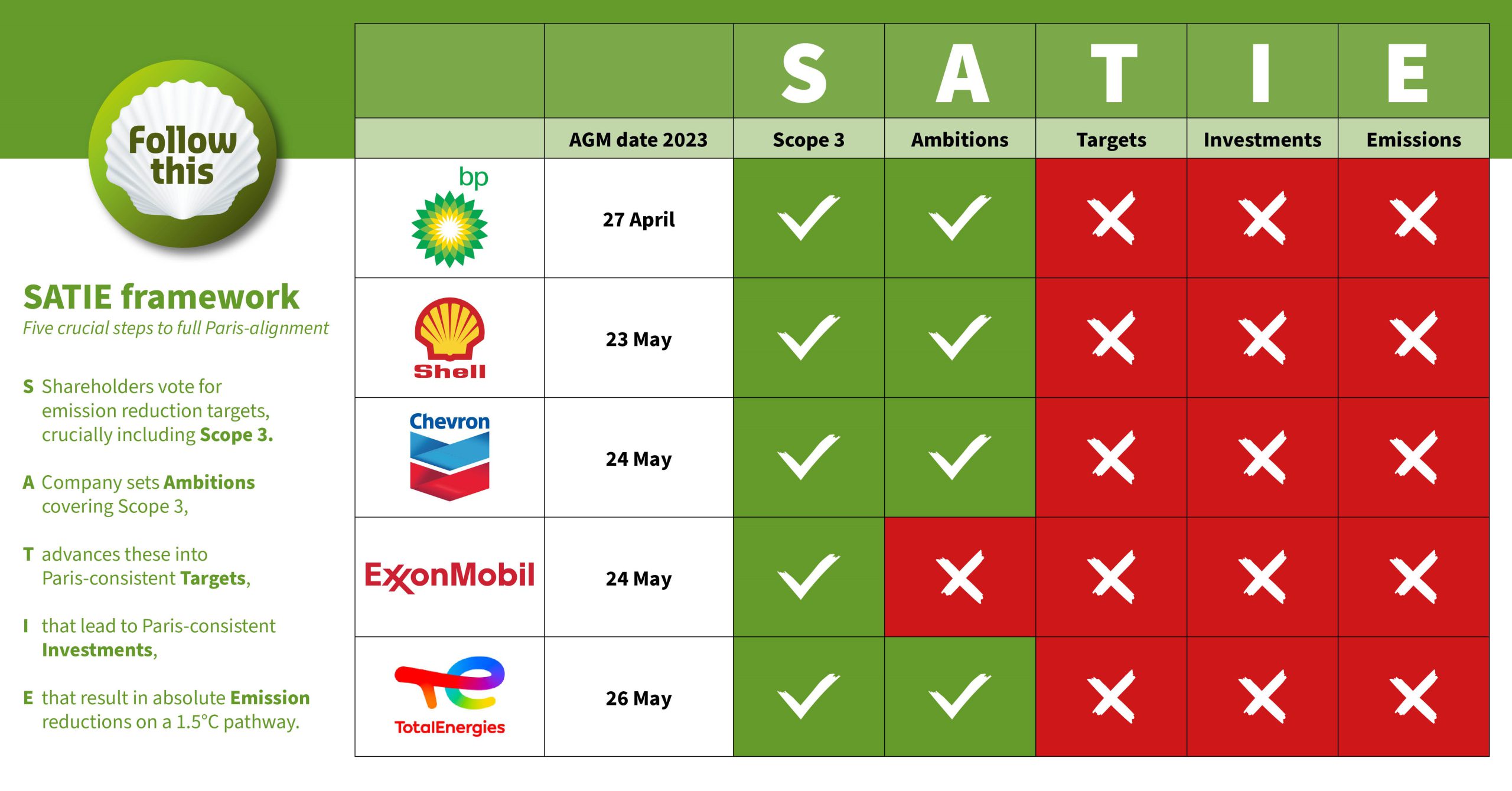 Our SATIE framework above shows that your vote is critical in compelling these five supermajors to align their 2030 Scope 3 targets with the Paris Climate Agreement goal as their current targets fall short.