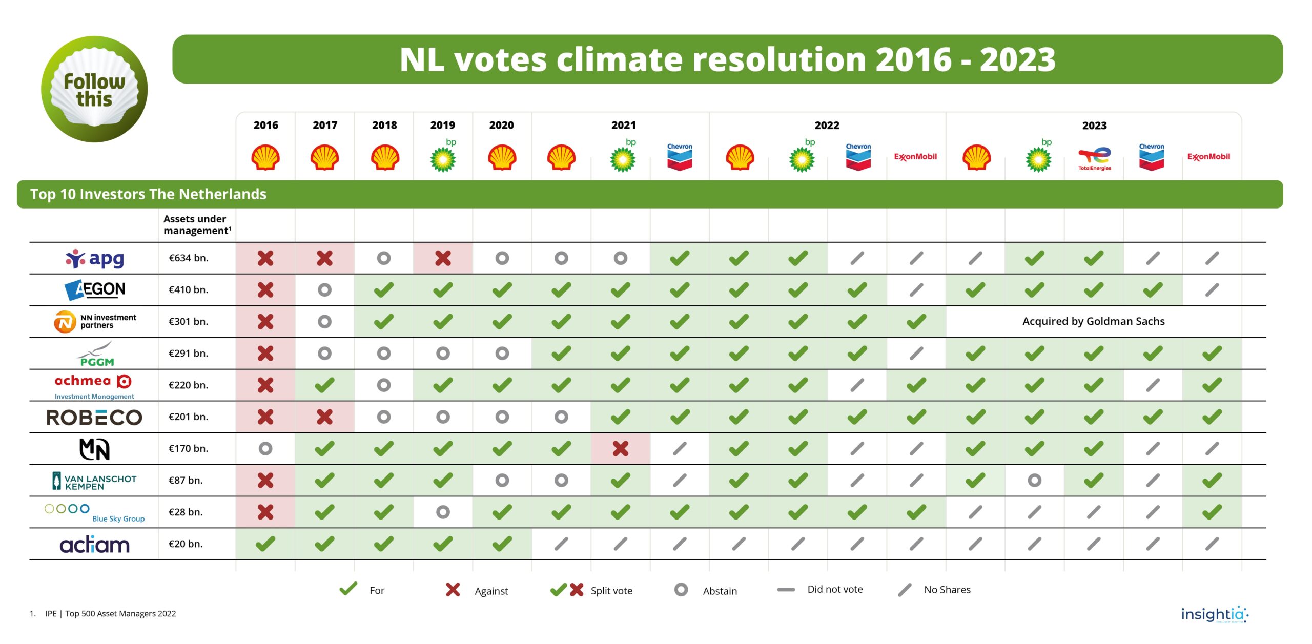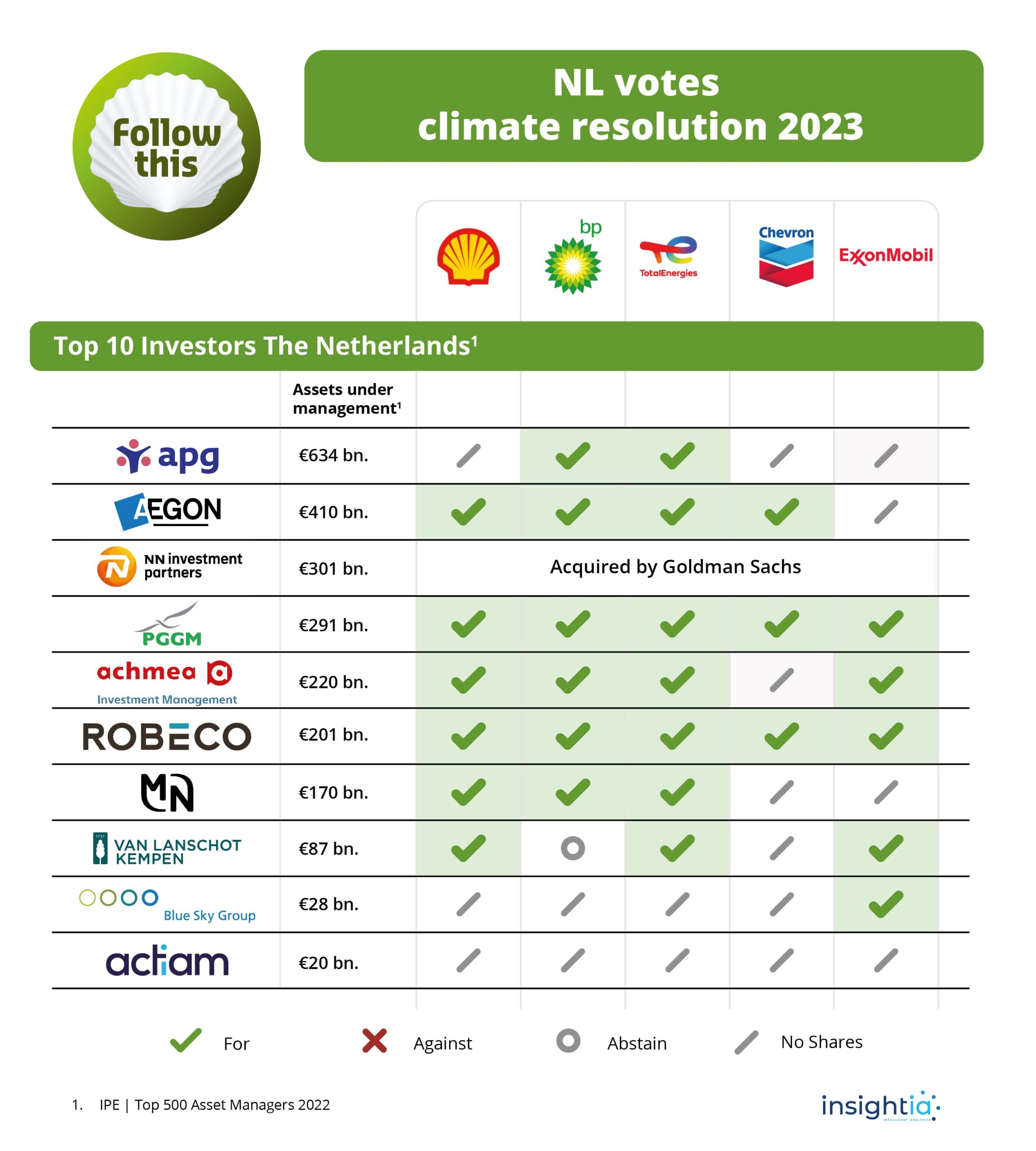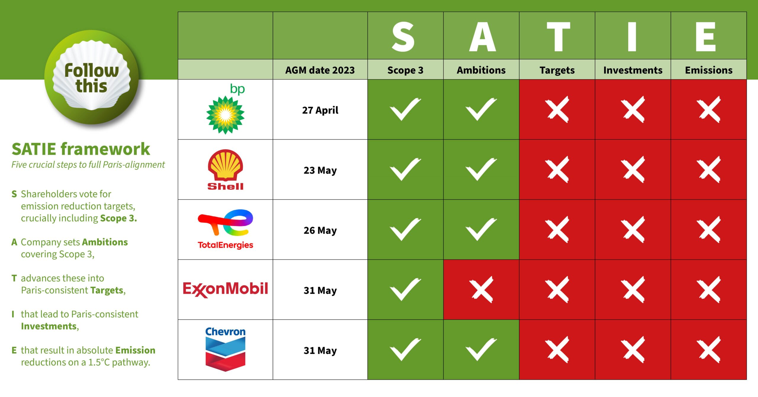 Follow This files climate resolutions, urging major oil companies to adopt Paris-aligned climate targets. Here are some of the results: